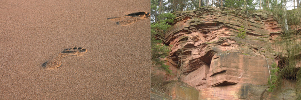 Najprostszym przykładem aktualizmu, który przychodzi mi na myśl są piaskowce. Sama nazwa wskazuje, z jakiego materiału, znajdowanego dziś na pustyniach, plażach, dnach mórz i oceanów, są one zbudowane. W świętokrzyskim występują różne rodzaje tych skał. Charakterystyczne i łatwo rozpoznawalne są piaskowce czerwone, które możemy ogladać w okolicach Tumlina, Suchedniowa i Wąchocka. Za ich kolor odpowiadają związki żelaza.